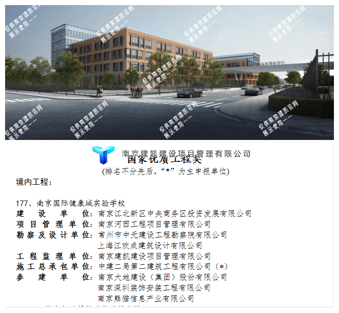 热烈祝贺我司南京国家健康城实验学校项目监理部荣获“国家优质工程奖”