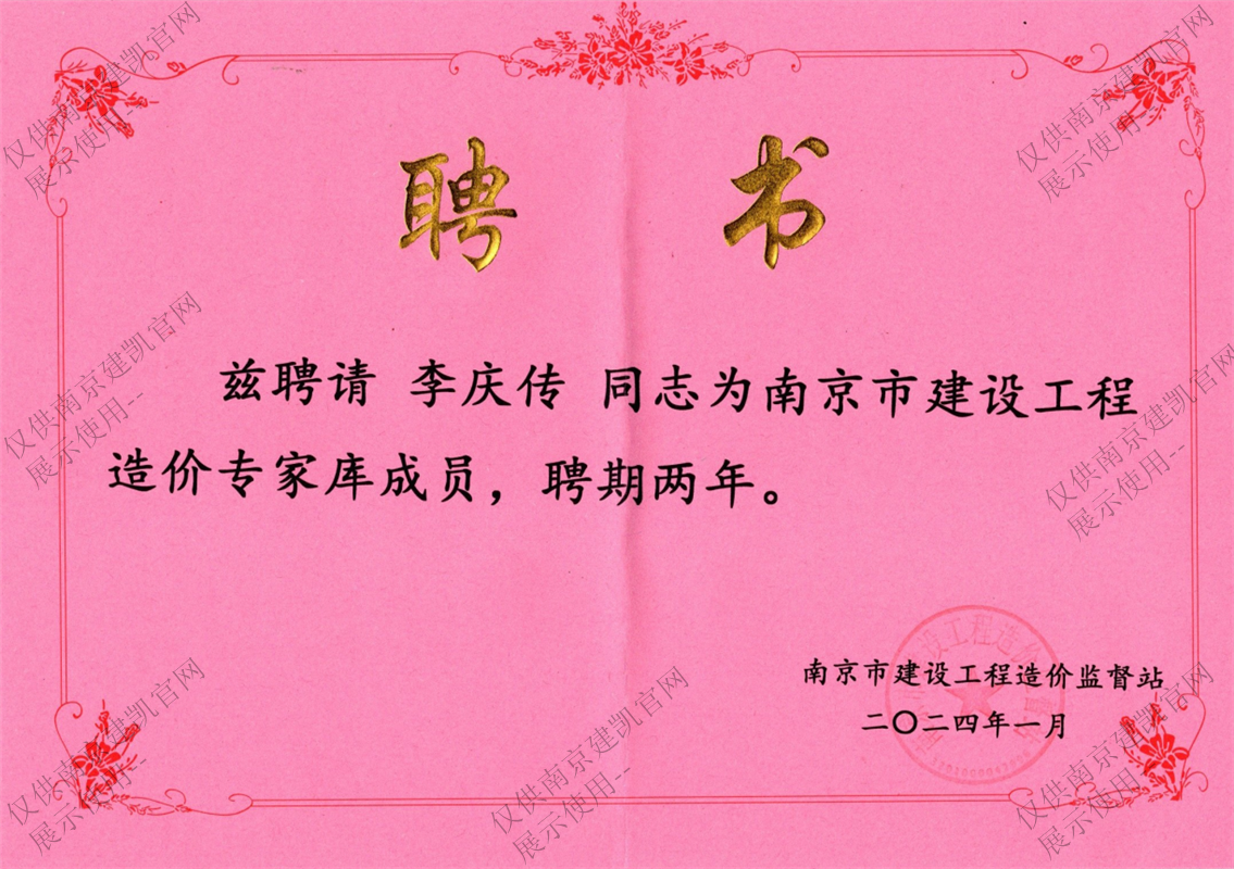 恭喜我司李庆传同志入选“南京市建设工程造价专家库成员”