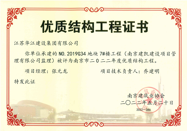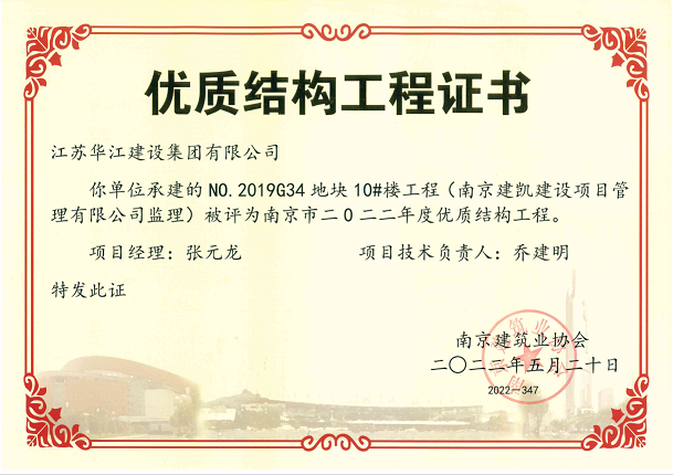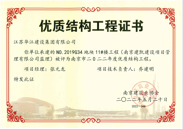 (2021年12月27)2021年度荣获优质结构工程—南京G34项目