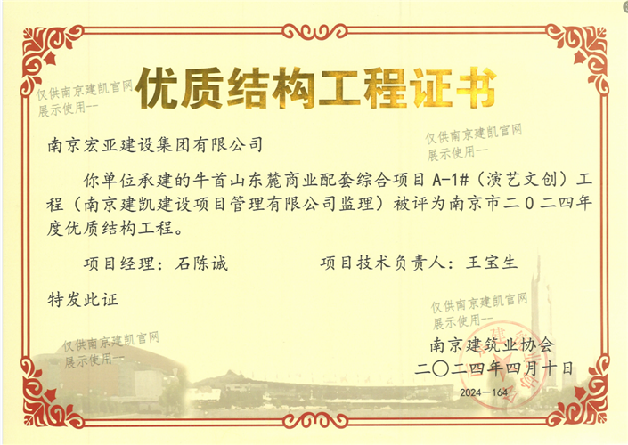 南京市二0二四年度优质结构工程(牛首山东麓商业配套综合项目A-1#(演艺文创)工程)