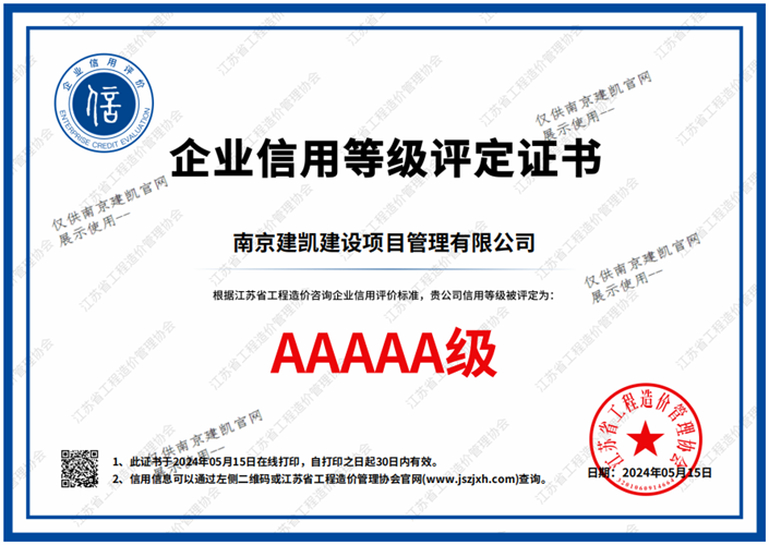 2024年度江苏省建设工程招标代理机构信用AAA级