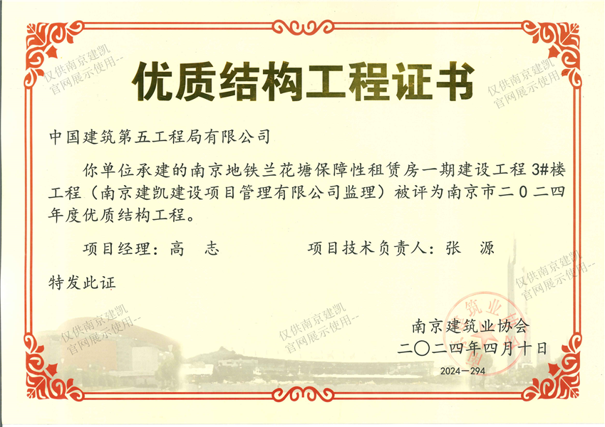 南京市二0二四年度优质结构工程(南京地铁兰花塘保障性租赁房一期建设工程3#楼工程)
