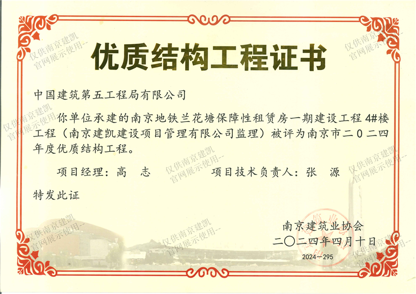 南京市二0二四年度优质结构工程(南京地铁兰花塘保障性租赁房一期建设工程4#楼工程)
