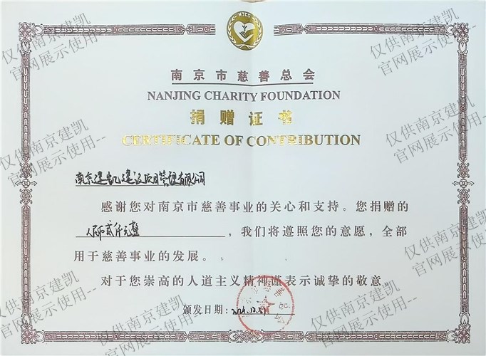 南京市慈善总会捐赠证书