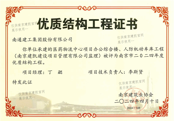 南京市二0二四年度优质结构工程(医药物流中心项目办公综合楼、人防机动车车库工程)