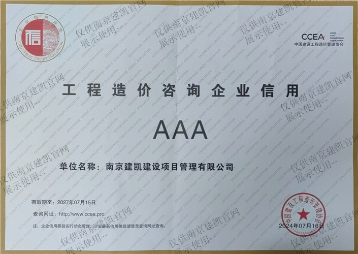 工程造价咨询企业信用AAA