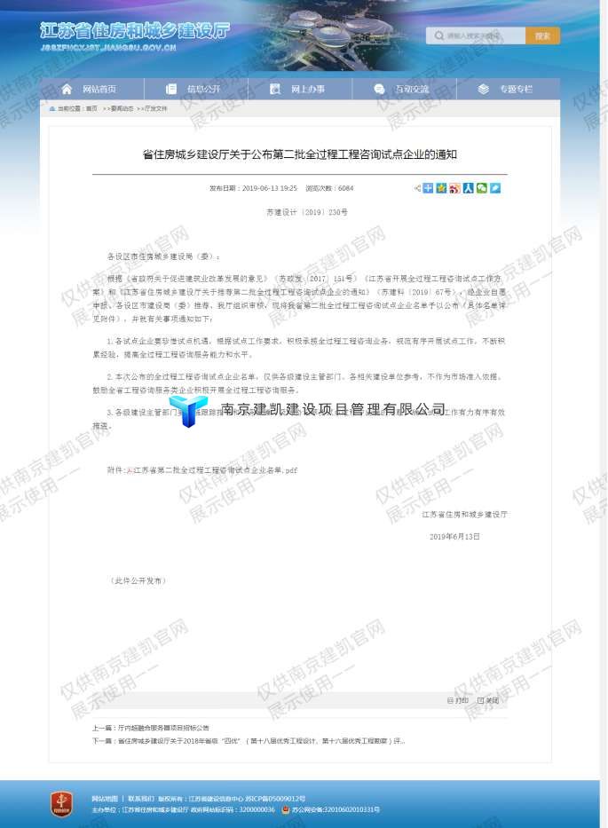 江苏省住房城乡建设厅公布全过程试点企业的通知