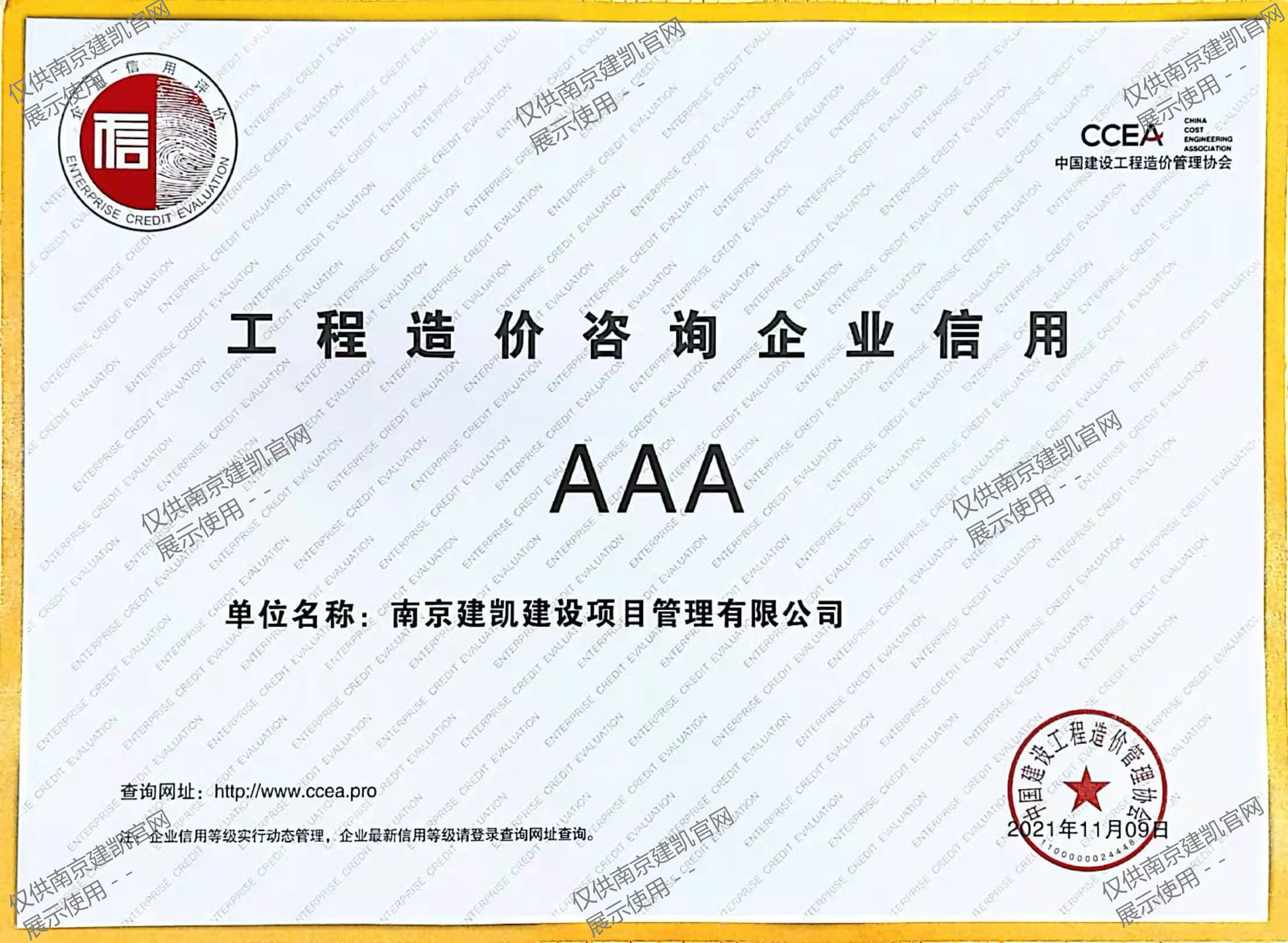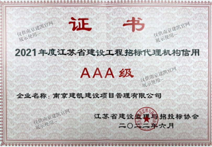 2021年度江苏省建设工程招标代理机构信用“AAA”等级认证