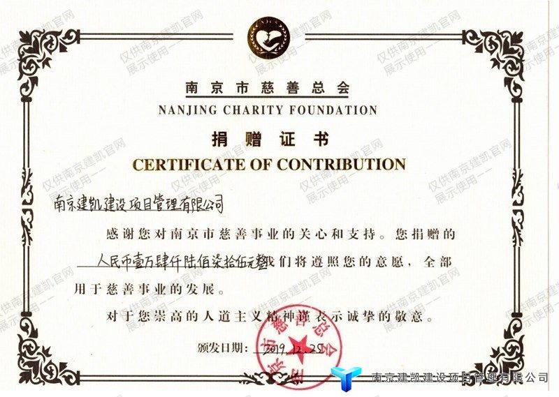 南京市慈善总会捐款证书